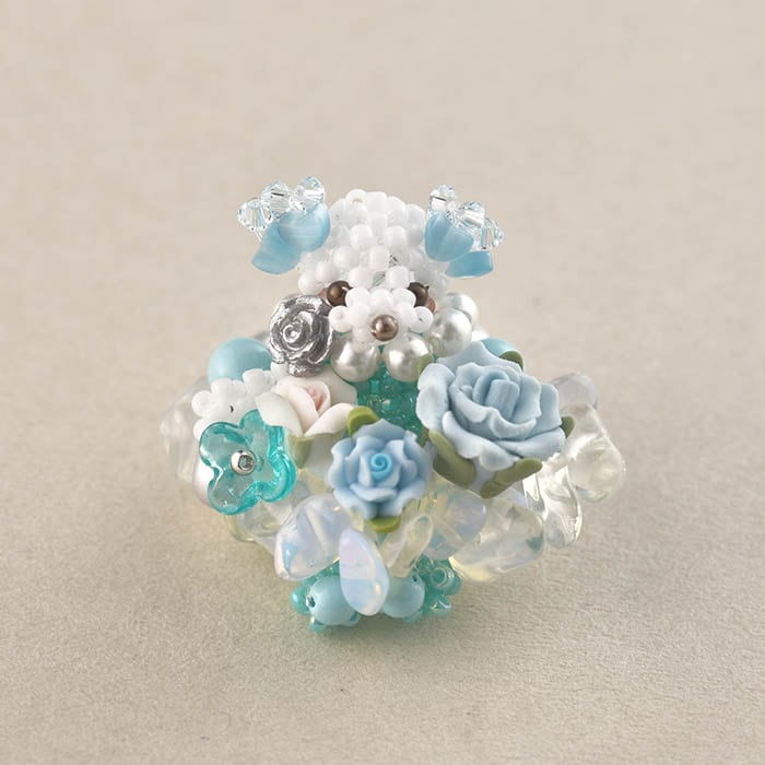 | 使用パーツ | ソフトフラワー、セラミックフラワー、ガラス4弁花、サンコバラ(開き)、パール、丸小、アクリル丸玉、バロックパール、キャッツアイ、クリスタル |