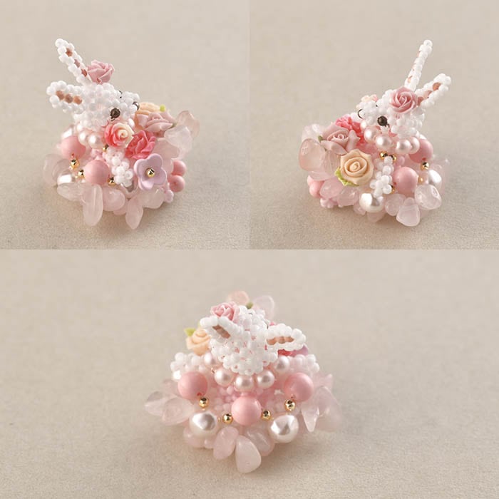 | 使用パーツ | 丸小、バロックパール、アクリル丸玉、セラミックフラワー、ソフトフラワー、アクリル4弁花、サンコバラ(さざれ石)、ローズクォーツ、天然石 |