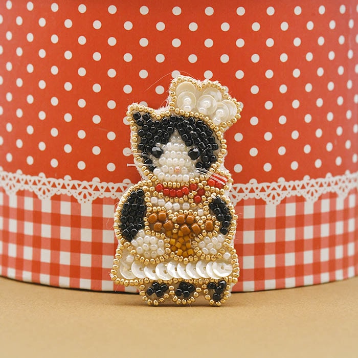 | 商品説明 | オートクチュールビーズ刺繍(針でビーズ刺繍)で作るネコさんのブローチ。