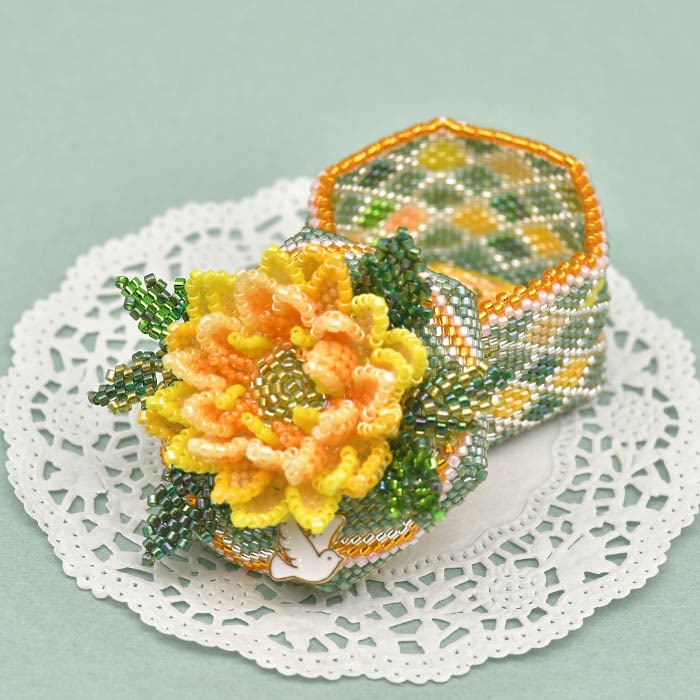 完成したBOXはあなたの使い方次第。季節を感じながら色とりどりのビーズを楽しく編み、リングやピアスなどお気に入りのアイテムを入れてお使いくださいませ♪ |