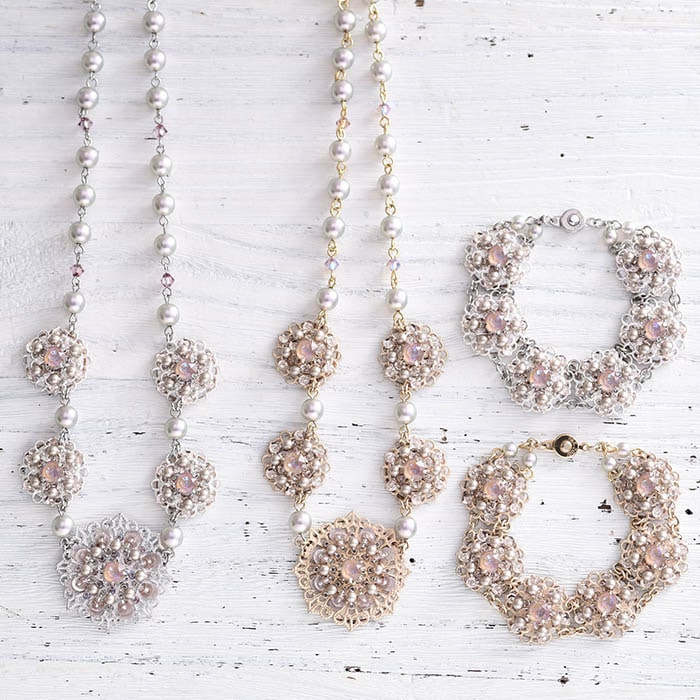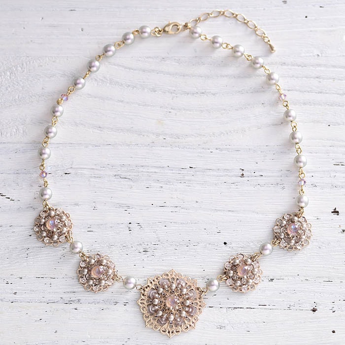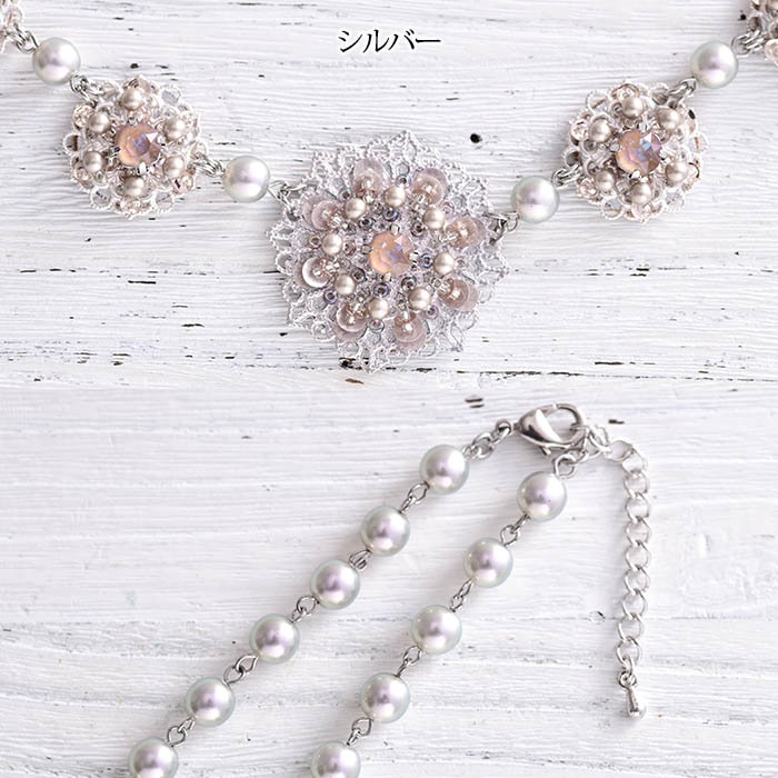 クリスタライズとクリスタルパールの優しい煌めきが素敵なネックレス。