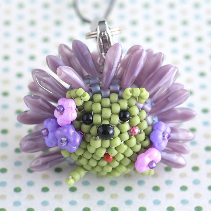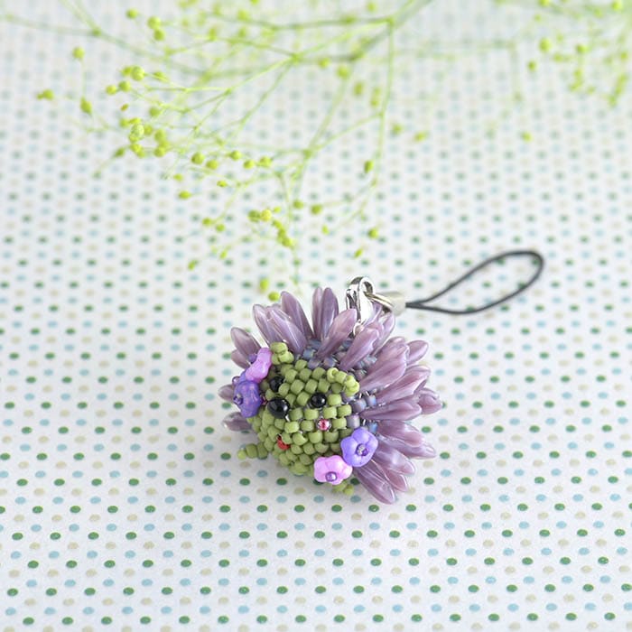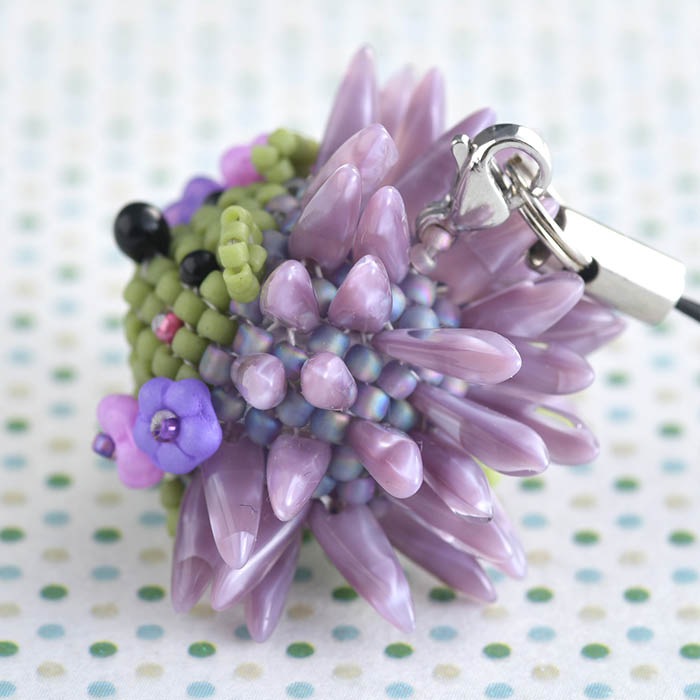 針に使用しているダガービーズは、落ち着いた紫系。