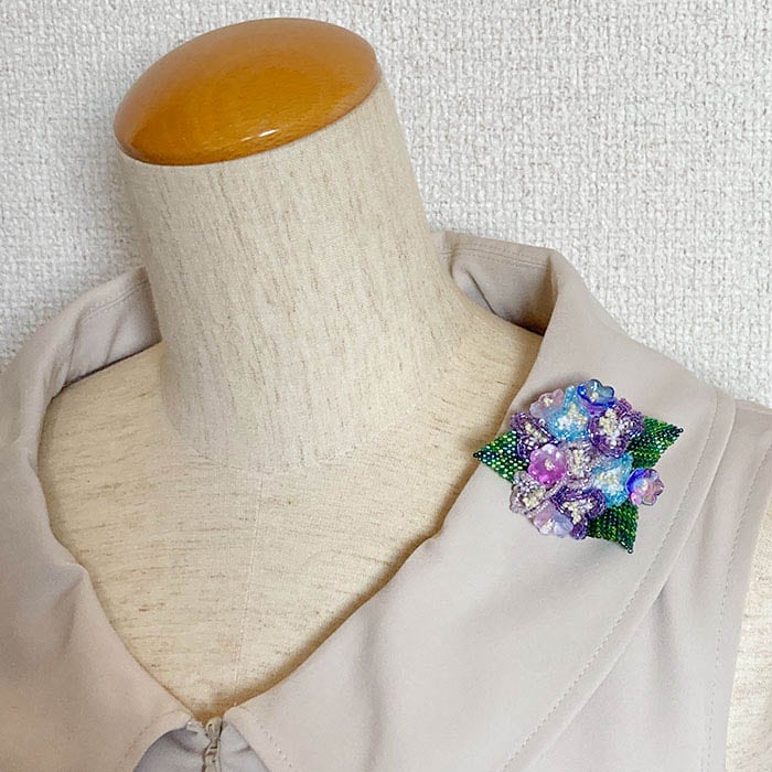 ビーズステッチで作るブローチ〜あじさい〜 【作家:ビーズパフェ 岡本恵子】