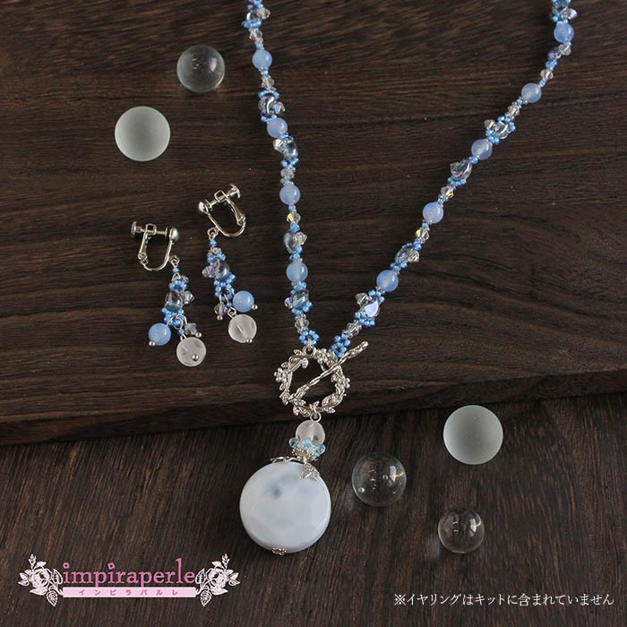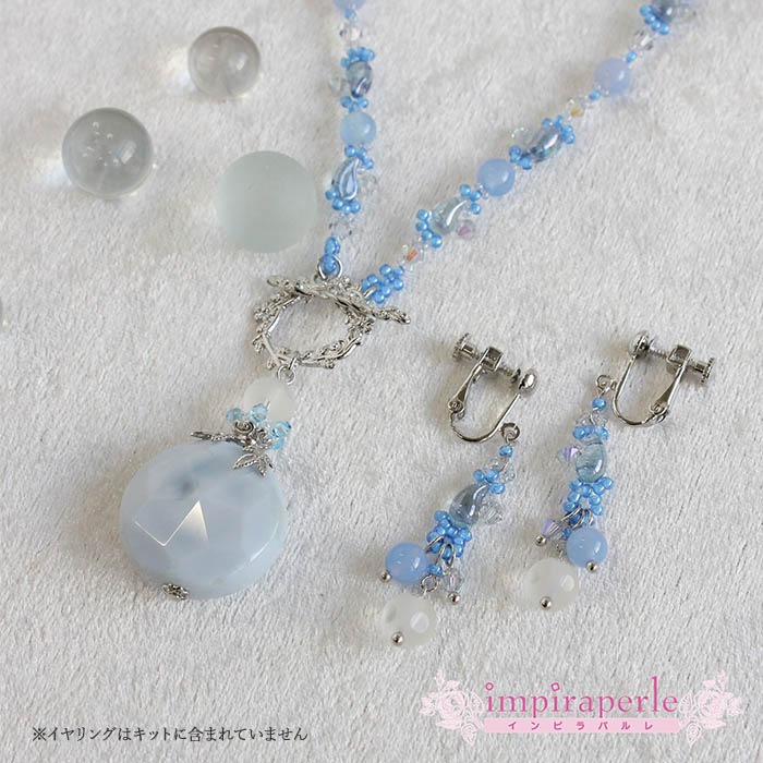 | 使用パーツ | カルセドニー、水晶、クリスタライズ、メタルパーツ、メタルビーズ、ゾリデュオ、シードビーズ、マンテル、テグス、Tピンなど |