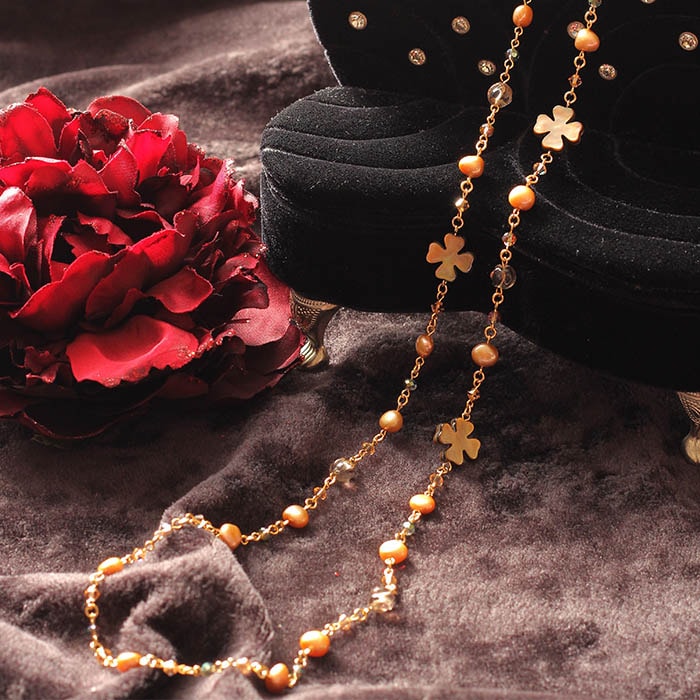 クローバーの形をしたブラウンカラーのシェルがポイントのロングネックレス。