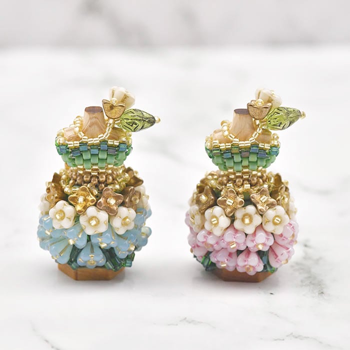 使用パーツ特小、丸小、デリカM、四角ビーズ、チェコ(花、小花、葉)、ハニカムトルソー