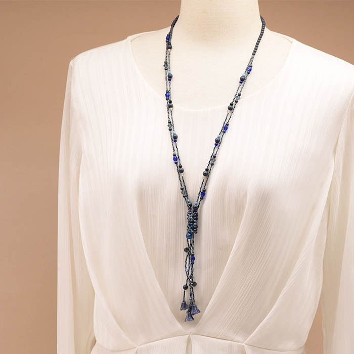 ソーダライト百合型をメインに、色々なビーズを使った“ラリエット風ロングネックレス”です!