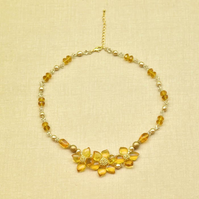 透明感あるはちみつ色のお花モチーフのネックレス。