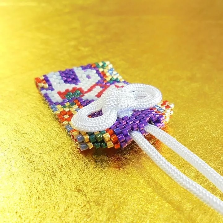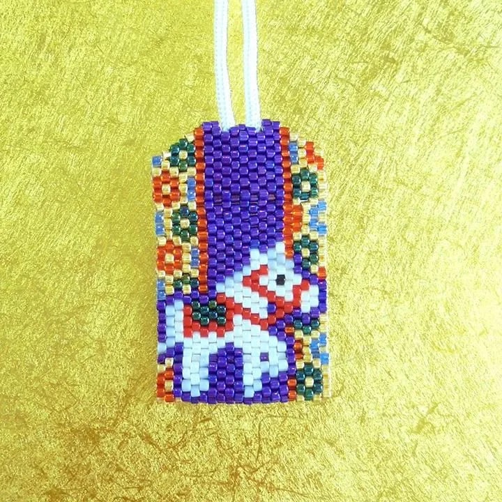 減らし目や二重叶結び房を通す穴をあけたりする工程があるので初歩的なペヨーテステッチよりは少しだけ難易度が高いです。 |