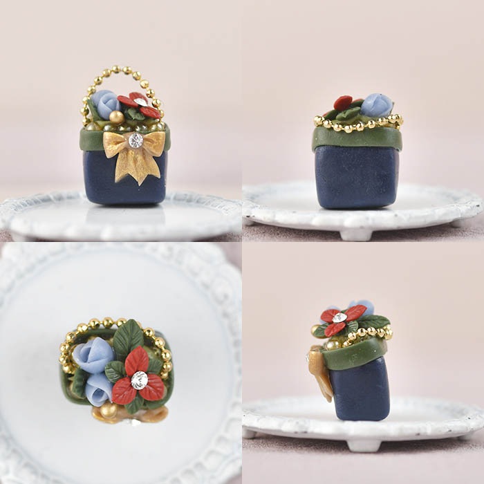 ★12/2 NEW★ ボンボニエール リボンバッグ クリスマス ネイビー 【作家:NARUMIDO】