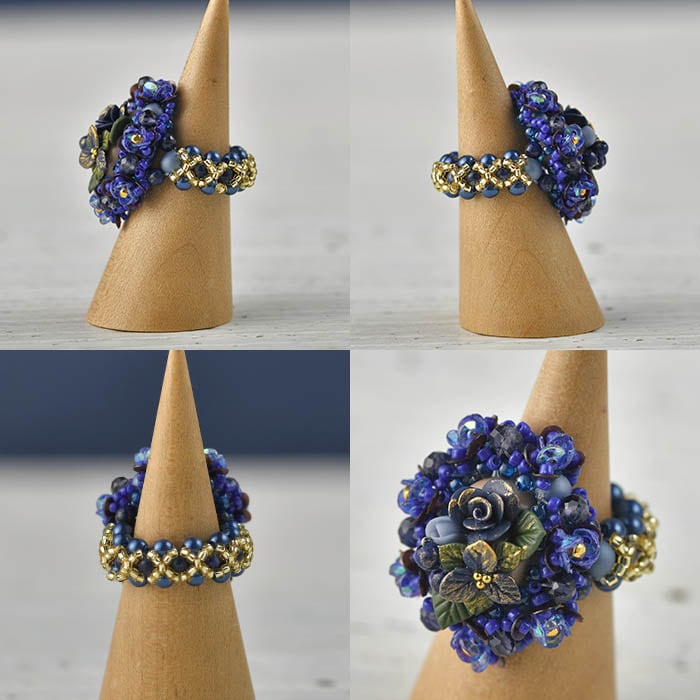 モチーフも大きめでリング部分も編み込むのでしっかりした付け心地のリングです。