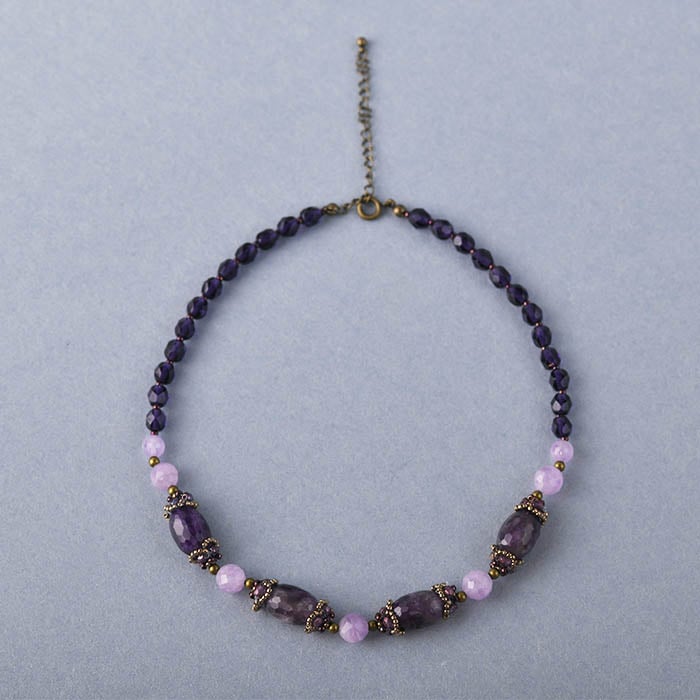 他ラベンダーアメジストや首周りには同じ色のチェコで囲み、
