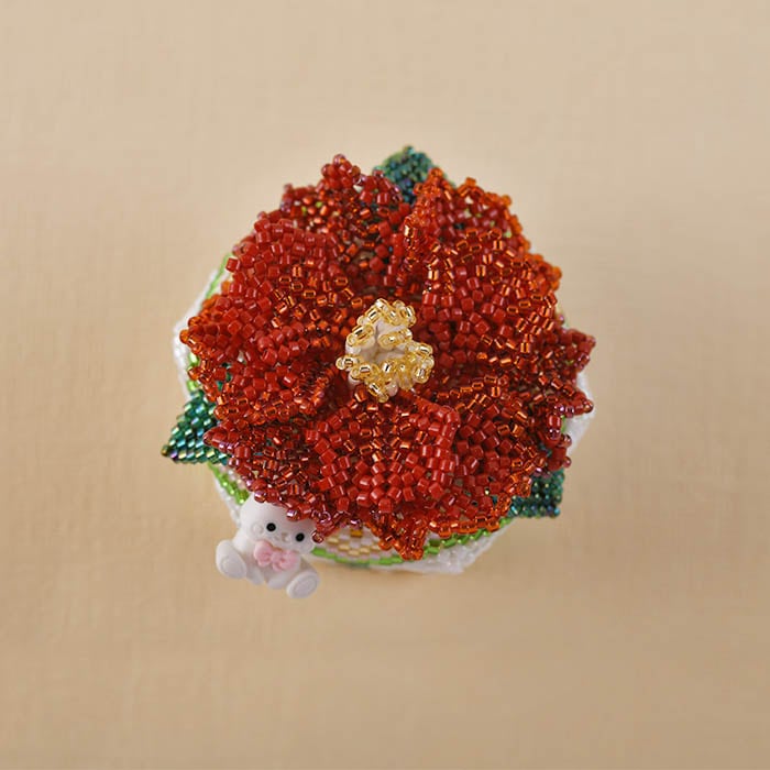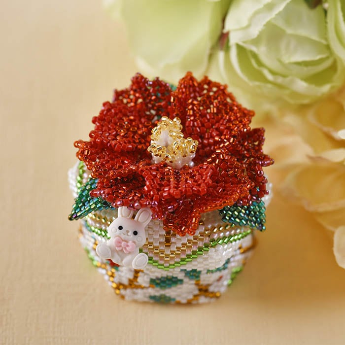 ★2/26 NEW★ ペヨーテステッチで編むBOX〜つばき〜 【作家:ビーズパフェ 岡本恵子】