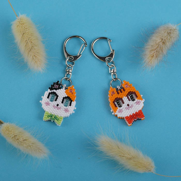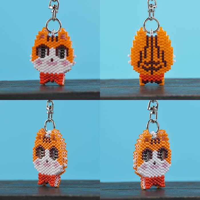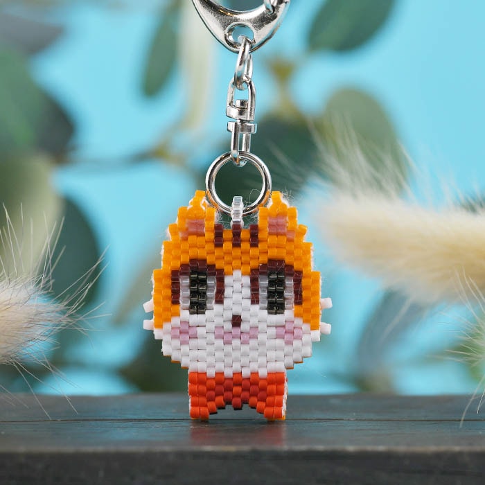 | 商品説明 | ペヨーテステッチの多層重ねで編むかわいい猫のキーホルダーです♪